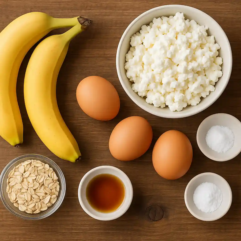 The best recipes start with simple, real ingredients—and these fluffy banana cottage cheese pancakes are no exception. You’ll only need a handful of pantry staples and a ripe banana or two. Here’s what brings the magic together: